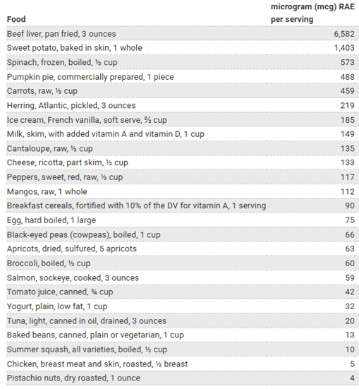 Table 1. Food sources of Dietary Vitamin A 7