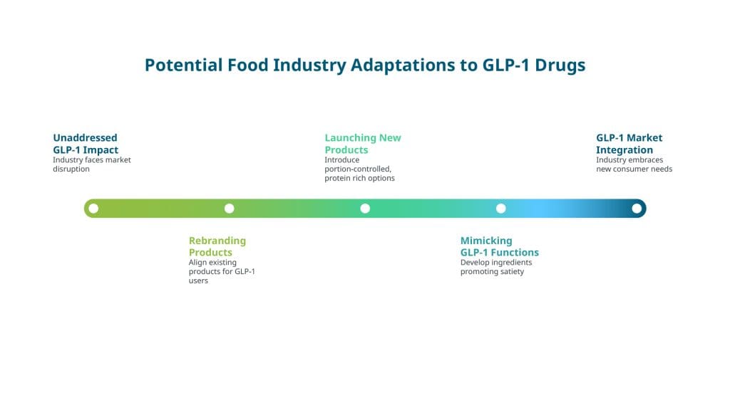 There are a few strategic approaches that are currently gaining momentum across the food, beverage and supplement industries 31 (Figure 4).  One strategy is to position existing products as complementary solutions for GLP-1 RA users.  Focusing on gut health aids that might alleviate gastrointestinal side effects and nutritional supplements that help offset deficiencies linked to reduced food intake.  Another approach is to launch products that are nutrient-dense and portion-controlled for both GLP-1 RA users and individuals tapering off the medication who continue to sustain weight loss whilst preserving muscle mass.